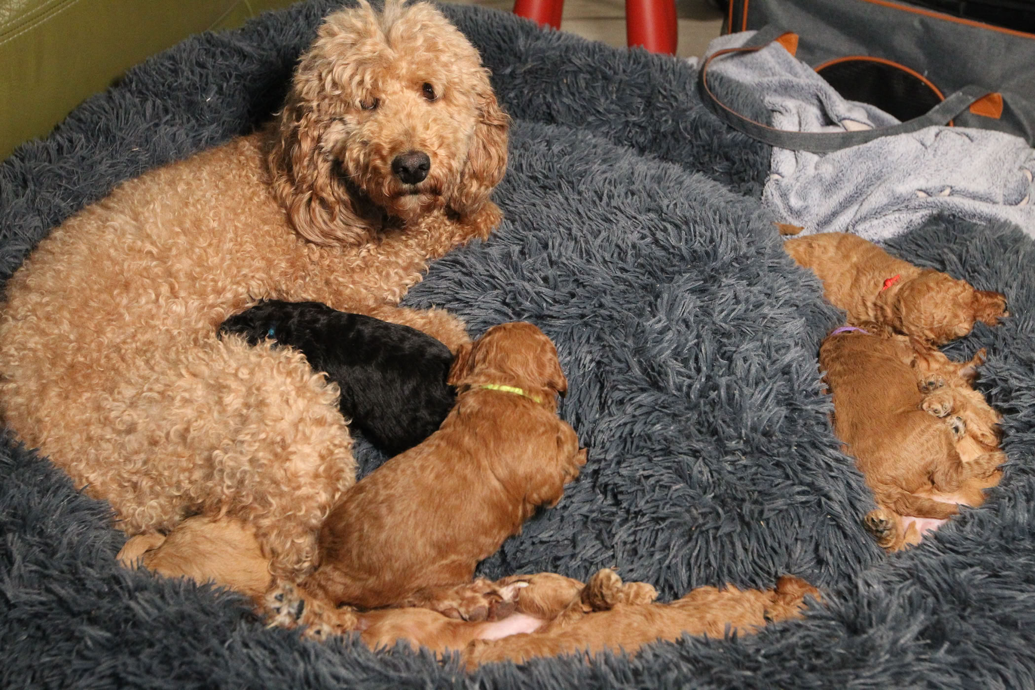 Wanda x Badel - kleine Großpudel in rot/weiss