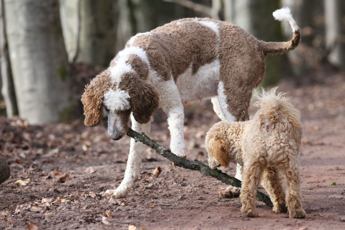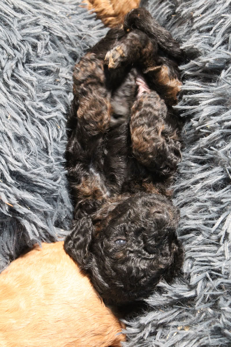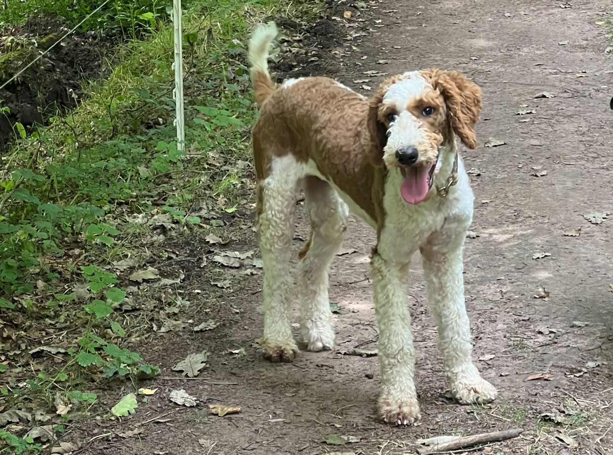 Emma hatte 2025 von Cappa Welpen, diese sind zu fröhlichen sportlichen und leicht fahrbaren Familienhunden heran gewachsen, Gordondoodle F1b in rot und schönem black/tan wie Emma schon zeigt.