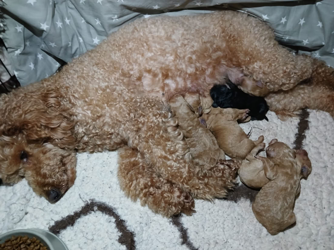 Wanda x Badel - kleine Großpudel in rot/weiss